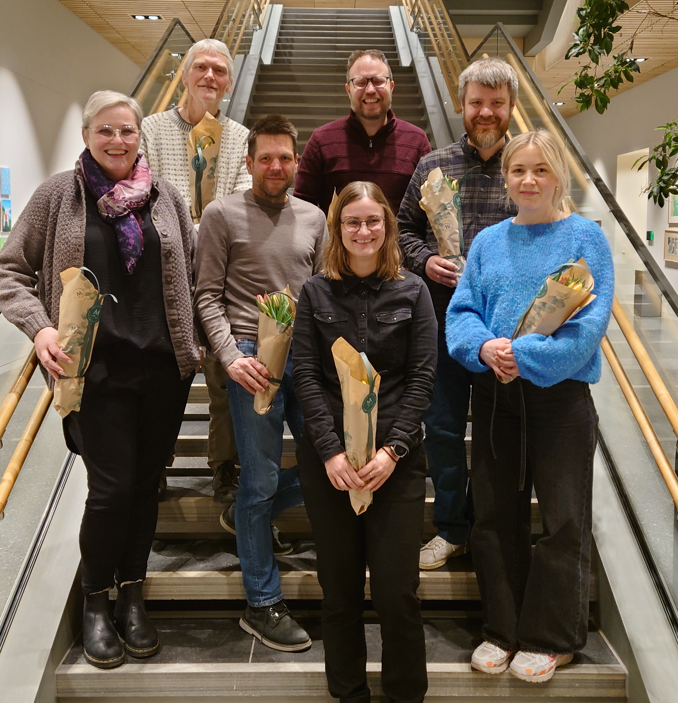 Bilde av det nye styret. Foran: Ny leder Aasa Kvia. Bak fra venstre: Elin Østvold, Tore Haye, Vidar Ekehaug, Lars Erik Hoff, Anders Refsnes og Ragnhild Svensen Stokka. Nazila Hamdard var ikke tilstede da bildet ble tatt.